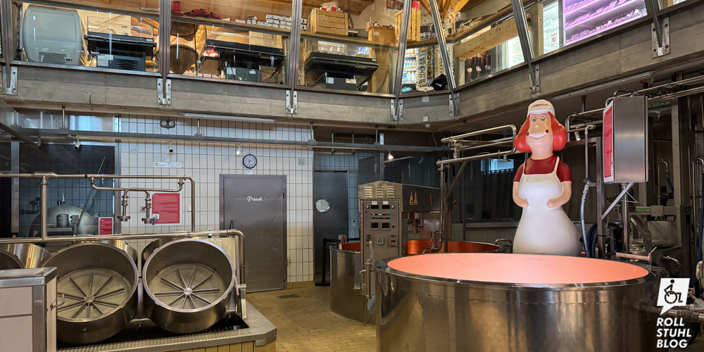 Die Emmentaler Schaukäserei in Affoltern und der Käserundgang «Königsweg» sind nicht nur komplett rollstuhlgängig, sondern auch wirklich sehenswert! Hier lernen wir viel über die Geschichte des Emmentalers und den Herstellungsprozess von der Kuh bis zur Lagerung des Käselaibs. Das Restaurant mit der grossen Fensterfront bietet einen wunderschönen Ausblick über die malerischen Hügel des Emmentals. Zum Gelände gehören auch ein altes Stöckli, in dem zwischendurch im Kupferkessel gekäst wird, und ein schöner Blumen- und Gemüsegarten. Beide sind nur über Stufen erreichbar. Schade: Die Behindertenparkplätze sind sehr schmal, und auf der Website fehlen Informationen zur Zugänglichkeit im Rollstuhl.