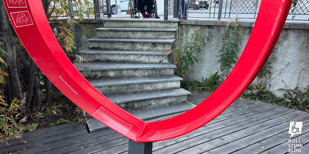 Hauptbestandteil der «Grand Tour of Switzerland» sind die 88 Fotospots mit den grossen roten Schild-Umrissen, die zum Selfie einladen. Auf unserer neuntägigen Reise haben wir 42 davon angesteuert. Nur 32 waren im Rollstuhl erreichbar. Bei den übrigen mussten wir allzu oft feststellen: Mit ein wenig gutem Willen hätten sie so platziert werden können, dass ein Selfie im Rollstuhl möglich gewesen wäre. Dass nicht einmal Schweiz Tourismus, die nationale Organisation für Tourismusvermarktung der Schweiz, die Zugänglichkeit für Menschen im Rollstuhl berücksichtigt, macht uns traurig.