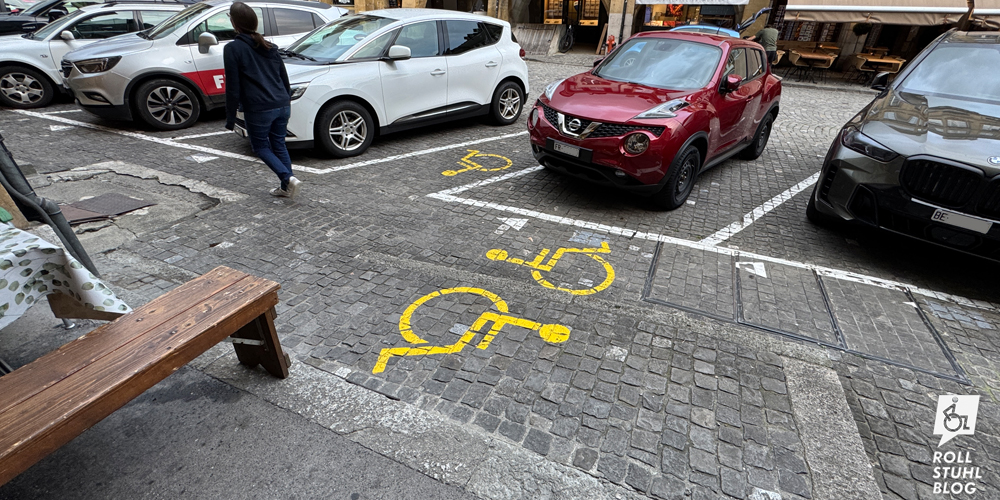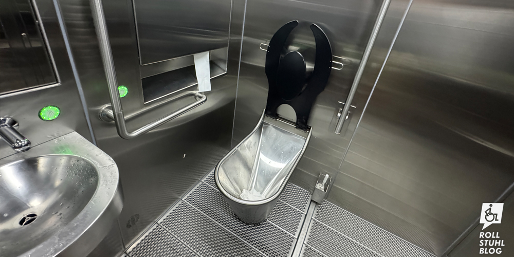 Insgesamt haben wir die Westschweiz und das Tessin barrierefreier empfunden als die Deutschschweiz. Aber überall sind uns Zustände aufgefallen, die so nicht hätten sein sollen. Bei einem grossen Teil der öffentlichen oder halböffentlichen Behindertentoiletten in Supermärkten und Raststätten fehlte beim langen WC-Sitz die vorgeschriebene Rückenlehne, was die Benutzung für Menschen mit körperlichen Beeinträchtigungen fast unmöglich macht. Wir haben standardmässig eine steife Rollstuhltasche mit dabei, die wir in solchen Fällen hinter dem WC-Sitz hinstellen können, aber das müsste nicht nötig sein. Bei mehreren Behindertentoiletten gab es keinen zweiten Schliesszylinder. Und tatsächlich hat in der Raststätte Bellinzona eine andere Person mit Eurokey die Toilette von aussen aufgeschlossen und ist hineingekommen, als wir sie gerade benutzt haben. Man könnte meinen, wir seien hier in einem Drittweltland unterwegs. Denn das ist die Schweiz leider in Bezug auf die Rollstuhlgängigkeit.