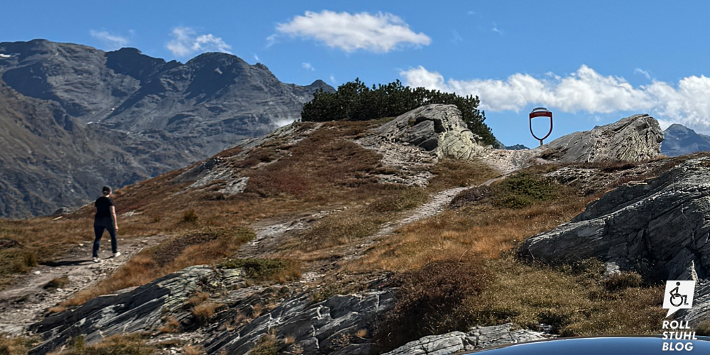 Obwohl es entlang der Passstrasse und den Haarnadelkurven viele Aussichtspunkte gibt, wurde der Fotospot auf einem Felsen angebracht. Dieser hätte sich gut geeignet, um eine Rampe mit nur leichtem Gefälle einzubauen. Aber nein, der Wunsch war wohl grösser, ihn für Menschen im Rollstuhl unerreichbar zu platzieren.