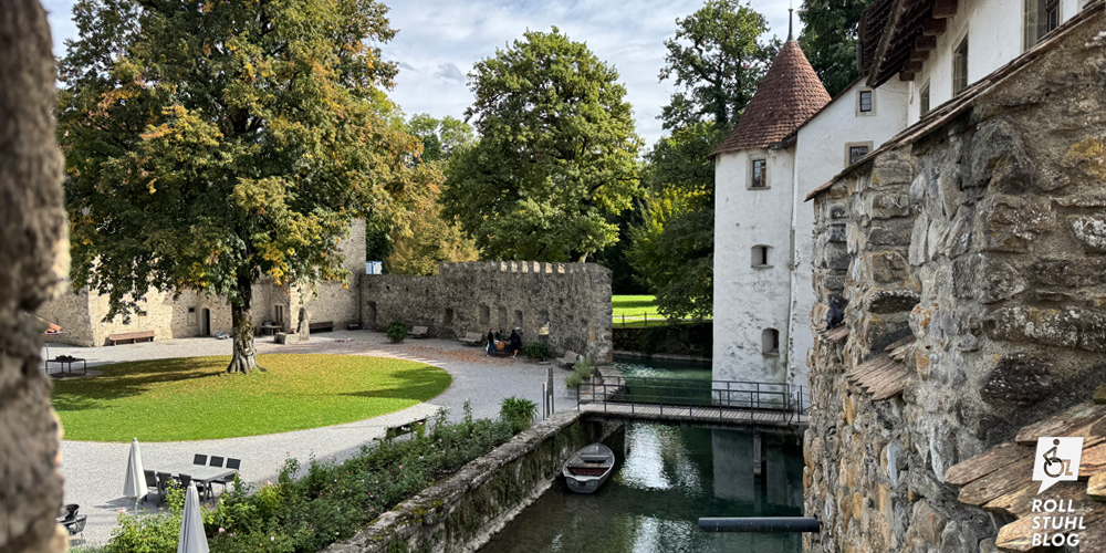 «Mit dem Rollstuhl kommen Sie nur ins Café», hören wir an der Kasse. «Dafür ist es für Sie gratis.» Und auch für mich als Begleitperson. Gabi im Rollstuhl muss im Café warten, während wir das Schloss erkunden. Das ist weniger lustig. Klar, die ältesten Teile des Wasserschlosses wurden im 12. Jahrhundert erbaut, der Rest ist auch nicht viel neuer. Natürlich haben wir Verständnis, dass damals beim Bau Menschen im Rollstuhl nicht berücksichtigt wurden. Trotzdem: Würde es in England stehen, gäbe es an einer versteckten Stelle Rampe und Lift.