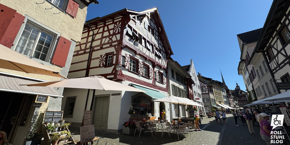 Die autofreie Altstadt von Stein am Rhein ist wunderschön. Hier fühlen wir uns sofort wohl und essen auf einer Bank am Rheinufer die wohl beste Crèpe, die wir je hatten. Ganz schlimm ist aber die öffentliche Behindertentoilette neben dem grossen Besucherparkplatz beim Untertor. An der Klobrille ist eine Feder befestigt, die sie nach oben klappt, wenn sie nicht hinuntergedrückt wird. Das macht den Transfer aus dem Rollstuhl extrem schwierig. Und die Rückenlehne besteht nur einer kleinen runden Platte, die durch die hochgeklappte Klobrille passt. Hier anzulehnen ist schwierig, und rutschig. Die ganze Behindertentoilette ist eine komplette Fehlkonstruktion. Und der Grund, wieso Stein am Rhein auf unserer Negativ-Liste landet.